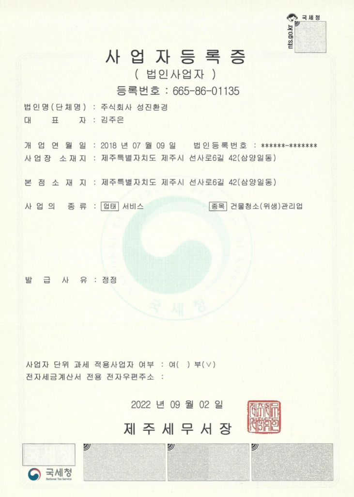 정식 등록된 위생관리 전문 업체로 세금계산서 발행이 가능합니다