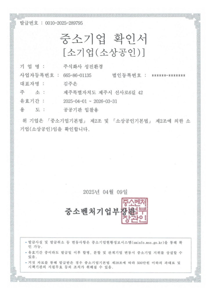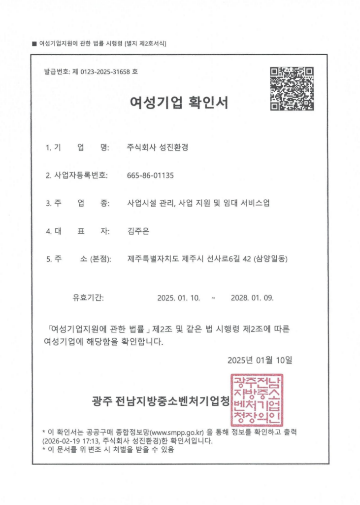 정부 인증 중소기업으로 공공기관 입찰 자격을 갖춘 검증된 업체입니다