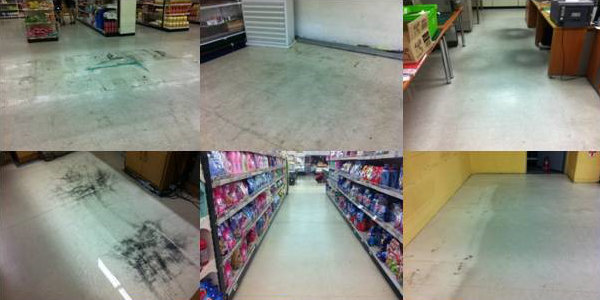 고객 방문이 많은 매장으로 바닥 오염이 심한 상태였습니다.